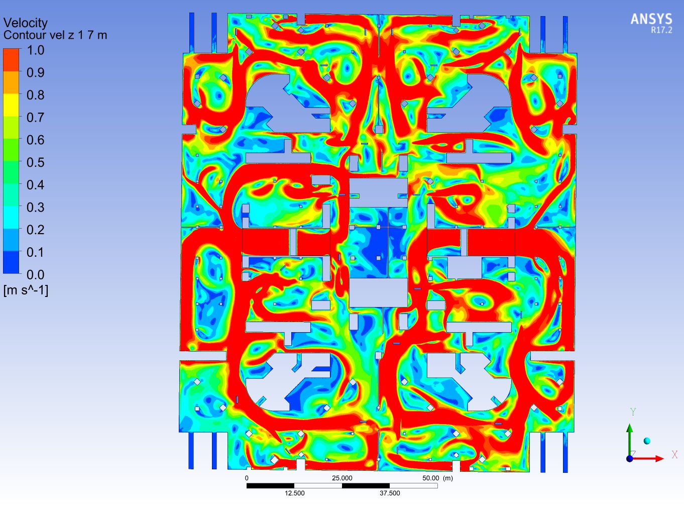 - در طراحی سیستم تهویه پارکینگ با استفاده از جت فن، ابتدا باید کل پارکینگ بدون درنظر گرفتن جت فن ها مدلسازی شود. سپس با بررسی نتایج و مشخص شدن نقاط سکون موجود در پارکینگ(محل های تجمع گاز CO) باید جتفنها جانمایی شوند.