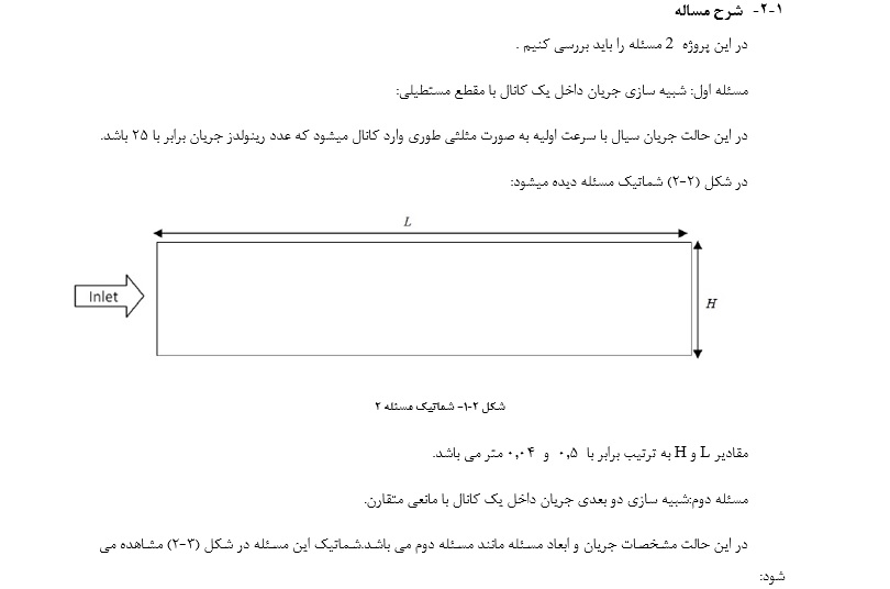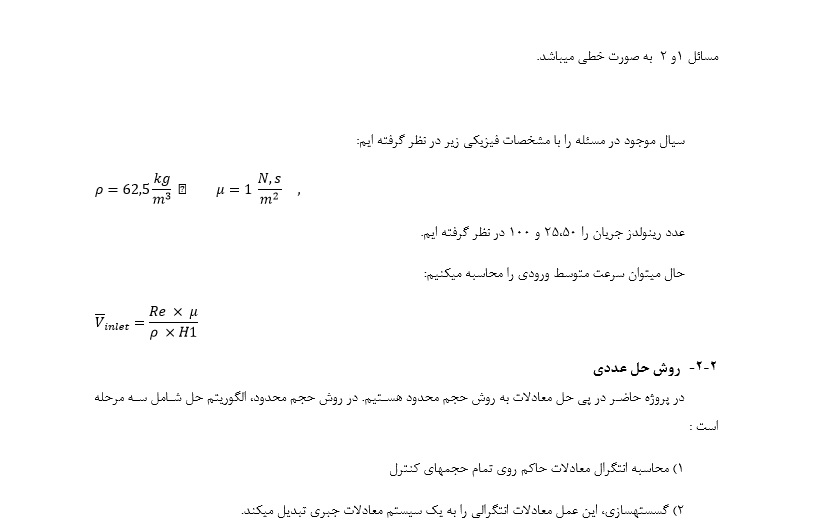 در این پروژه ، با بیان معادلات اساسی حاکم بر جریان سیال غیر قابل تراکم، به گسسته سازي آنها، تا رسیدن به دستگاه معادلات جبري پرداخته و با انتخاب الگوریتم کوپل مناسب، یک برنامه کامپیوتري براي مدلسازي جریان سیال دو بعدي بدست میاوریم.