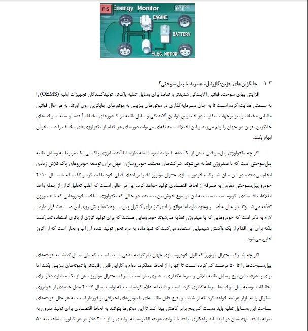 ۱-۳- جايگزينهاي بنزين؛گازوئيل، هيبريد يا پيل سوختي؟ ۴